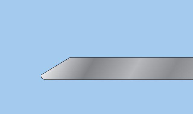 Mostly used in coating but also gravure and flexo printing. Wipes well up to the point when the contact zone becomes too large. Available in bevel angles of 2° & 15°, can be supplied in higher angles.